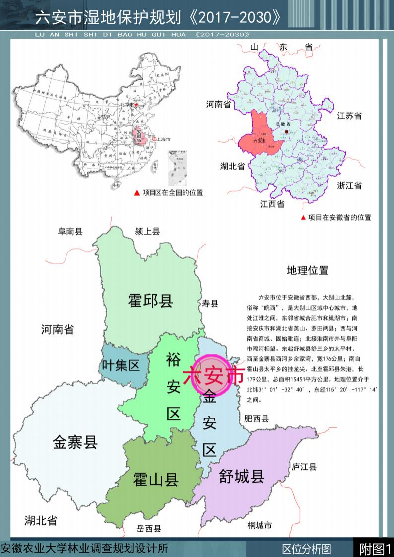 项目名称:六安市湿地保护规划(2017 ~2030 年)