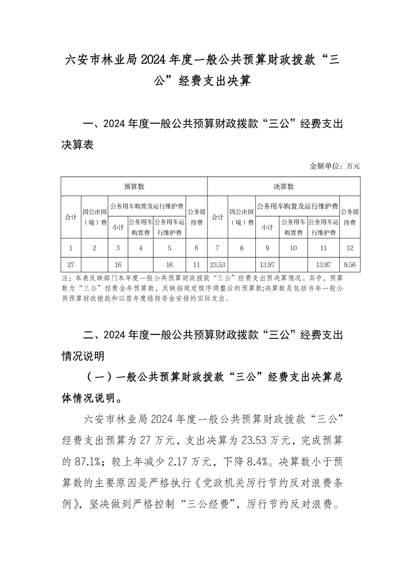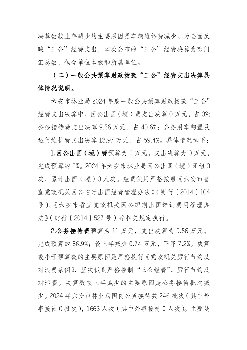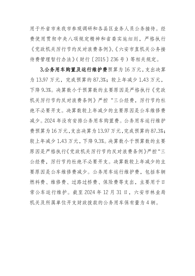 六安市林业局2024年度一般公共预算财政拨款“三公”经费支出决算