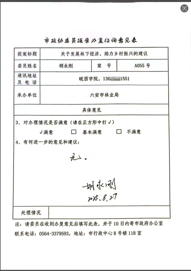 您提出的《关于大力发展林下经济赋能乡村振兴的相关建议》已收悉。感谢您对我市林下经济产业发展的关心与支持。针对您提出的建议,现将办理情况答复如下: