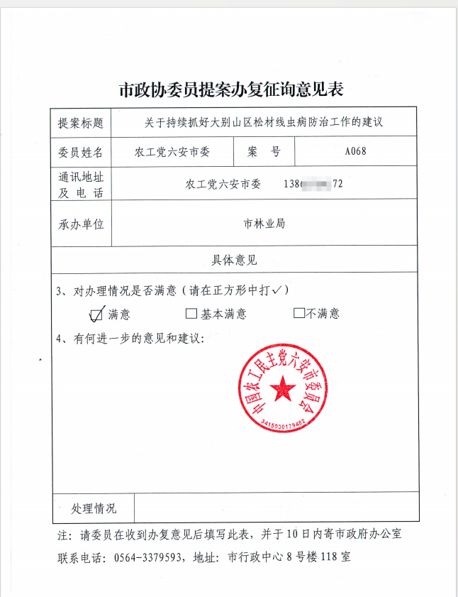 您提出的《关于持续抓好大别山区松材线虫病防治工作的建议》已收悉。感谢您对我市松材线虫病疫情防控工作的关心与支持。针对您提出的建议,市政府高度重视,要求我单位认真研读,积极吸收采纳相关建议,结合现阶段工作实际,认真组织办理。