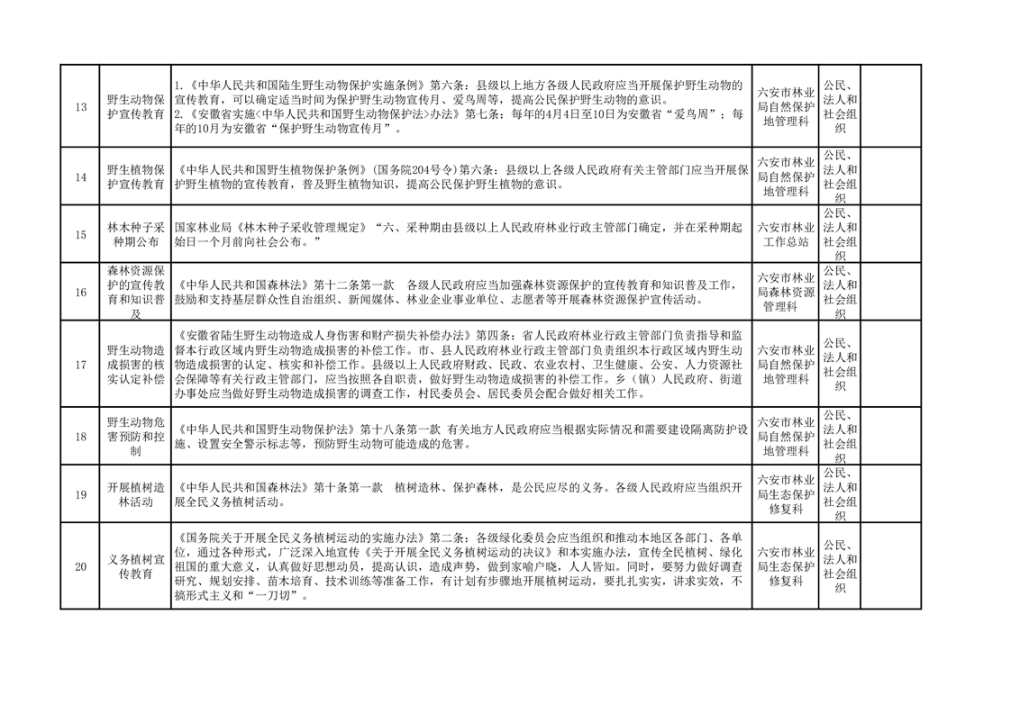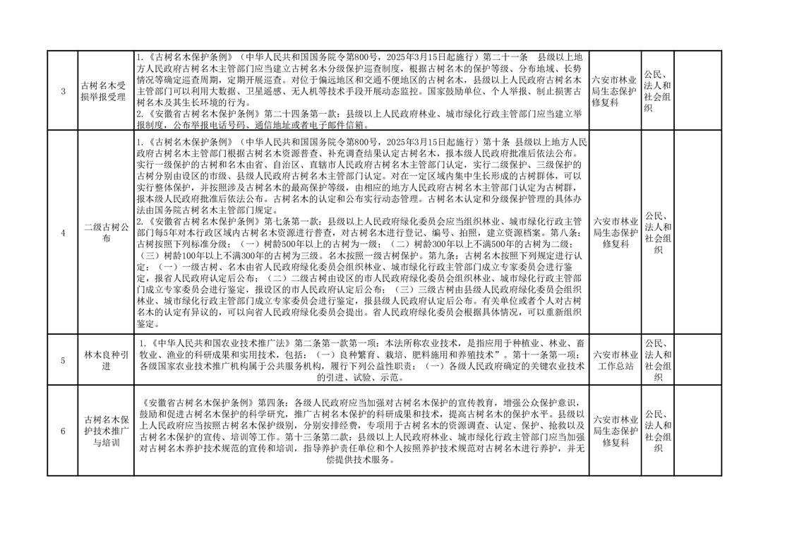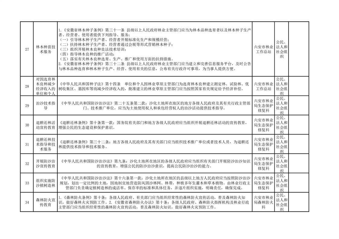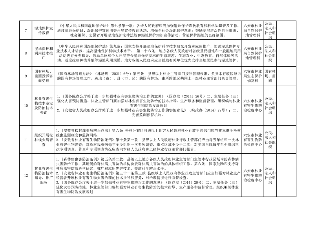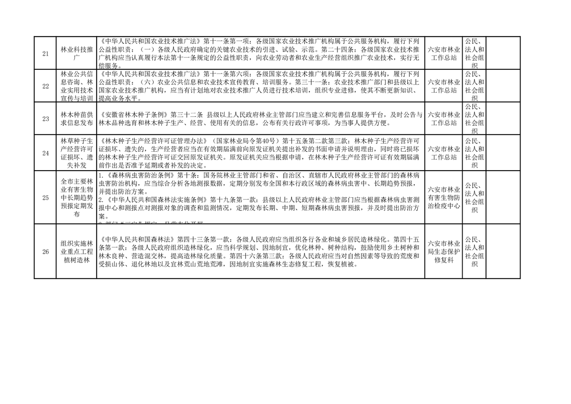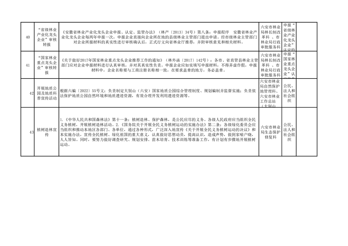 六安市林业局公共服务清单(2025)