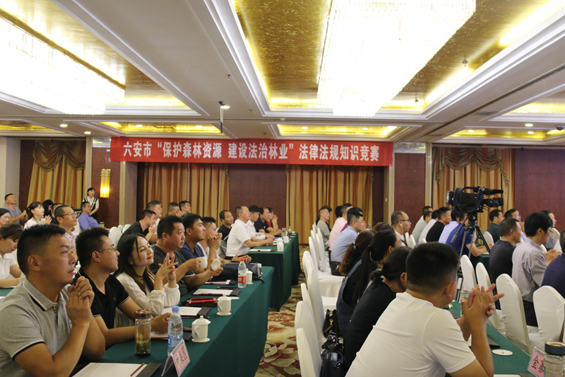 为进一步提高全市林业系统依法行政水平,努力营造团结有爱、积极向上、创先争优的工作学习氛围,9月18日下午,由市林业局主办的全市“保护森林资源 建设法治林业”法律法规知识竞赛在皖西宾馆举行,来自市直及各县区林业系统8个代表队参加比赛。市委副秘书长张志胜、市林业局局长江善林、市广播电视台副台长张兵、市林业局副局长张善忠、市纪委派驻市自然资源局纪检组副组长王贤春等领导出席比赛。