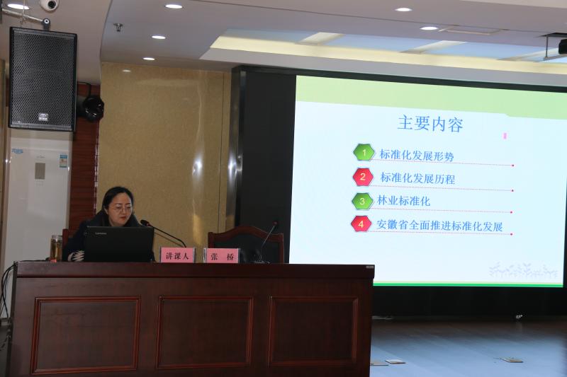 市林业工作总站站长张桥同志以《林业标准化知识与政策解读》为题,采用PPT、网络短视频等方式,从标准化发展趋势、标准化发展历程、林业标准化、安徽省全面推进标准化发展等四个方面作了精彩的讲课。讲课之后,2名参会人员进行点评,认为讲课内容丰富,知识性强,通过学习,受益匪浅。同时全体人员对讲课情况进行了民主测评。随后,办公室副主任王礼来领学《六安市林业局工作制度汇编》,从上级管理制度、单位日常管理制度两方面对全体干部职工日常行为规范提出要求。