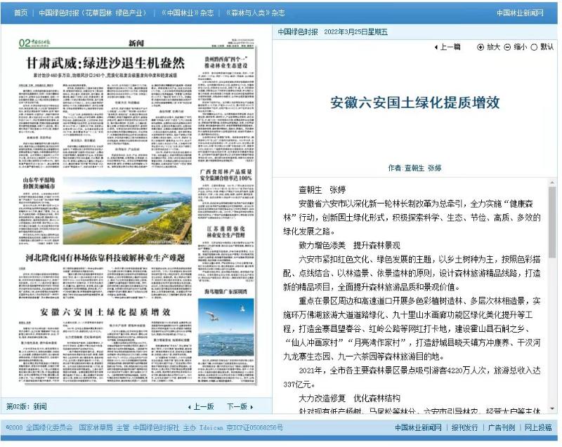 中国绿色时报|安徽六安国土绿化提质增效