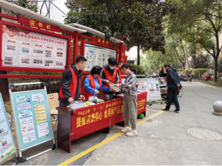 下午,在裕安区鼓楼街道小东街社区金城华庭小区开展消费维权法律知识宣传活动,通过悬挂宣传标语、发放宣传资料等方式向广大居民宣传食用林产品质量安全和种子法。