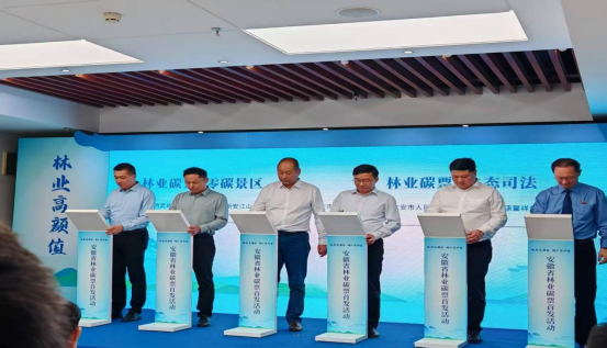 4月24日,安徽省林业碳票首发活动在黄山市举行。副省长孙勇,国家林草局驻合肥专员办专员陈立桥,省政府副秘书长汪春明,省林业局局长周密,黄山市副市长戴炜出席并共同颁发林业碳票。