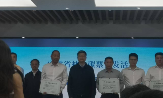 安徽省林业碳票首发活动在黄山市举行,六安市霍邱县西山林场受颁安徽林业碳票4号证